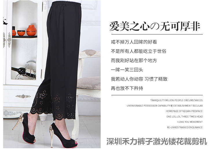 服装面辅料表面的切割与雕刻,可以对单层或多层布料一次性切割、打孔、雕花; 6、特制负压吸附工件,专用布料通道及张紧结构设计,有效保证裁剪质量; 7、智能化软件编辑,用户可根据加工需要,设置加减速度/匀速操作方式,图文输出可实现清扫、勾线